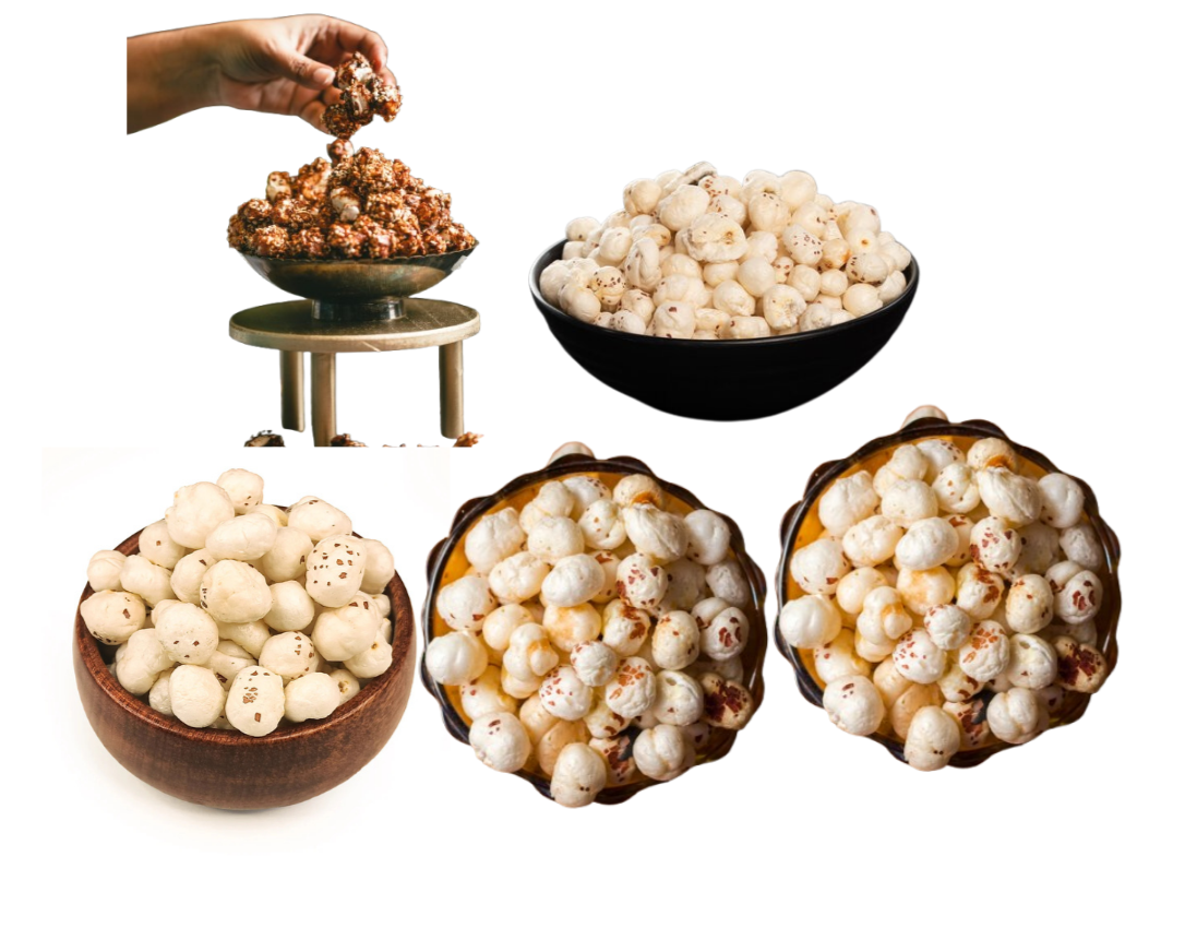 Makhana, also known as fox nuts or lotus seeds, is a natural, highly nutritious superfood harvested from the seeds of the lotus flower (Euryale ferox), which typically grows in still water bodies like ponds and wetlands.